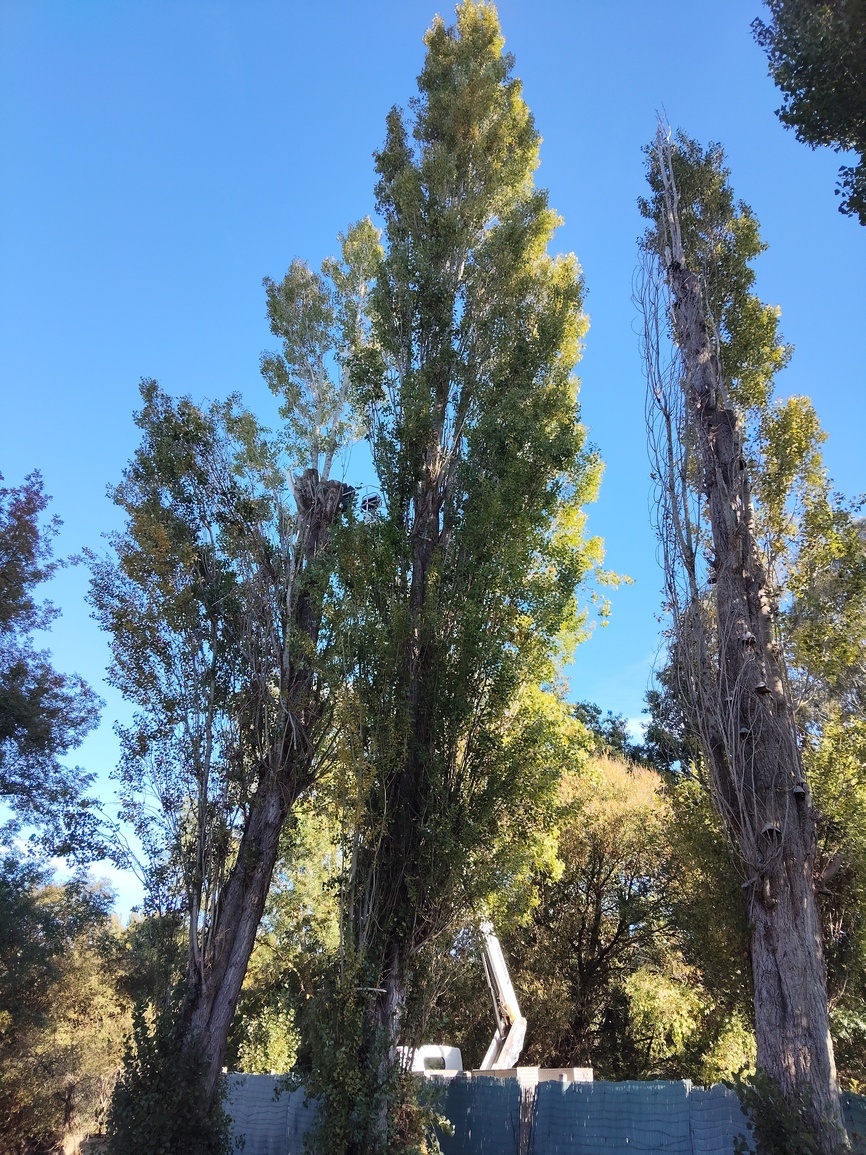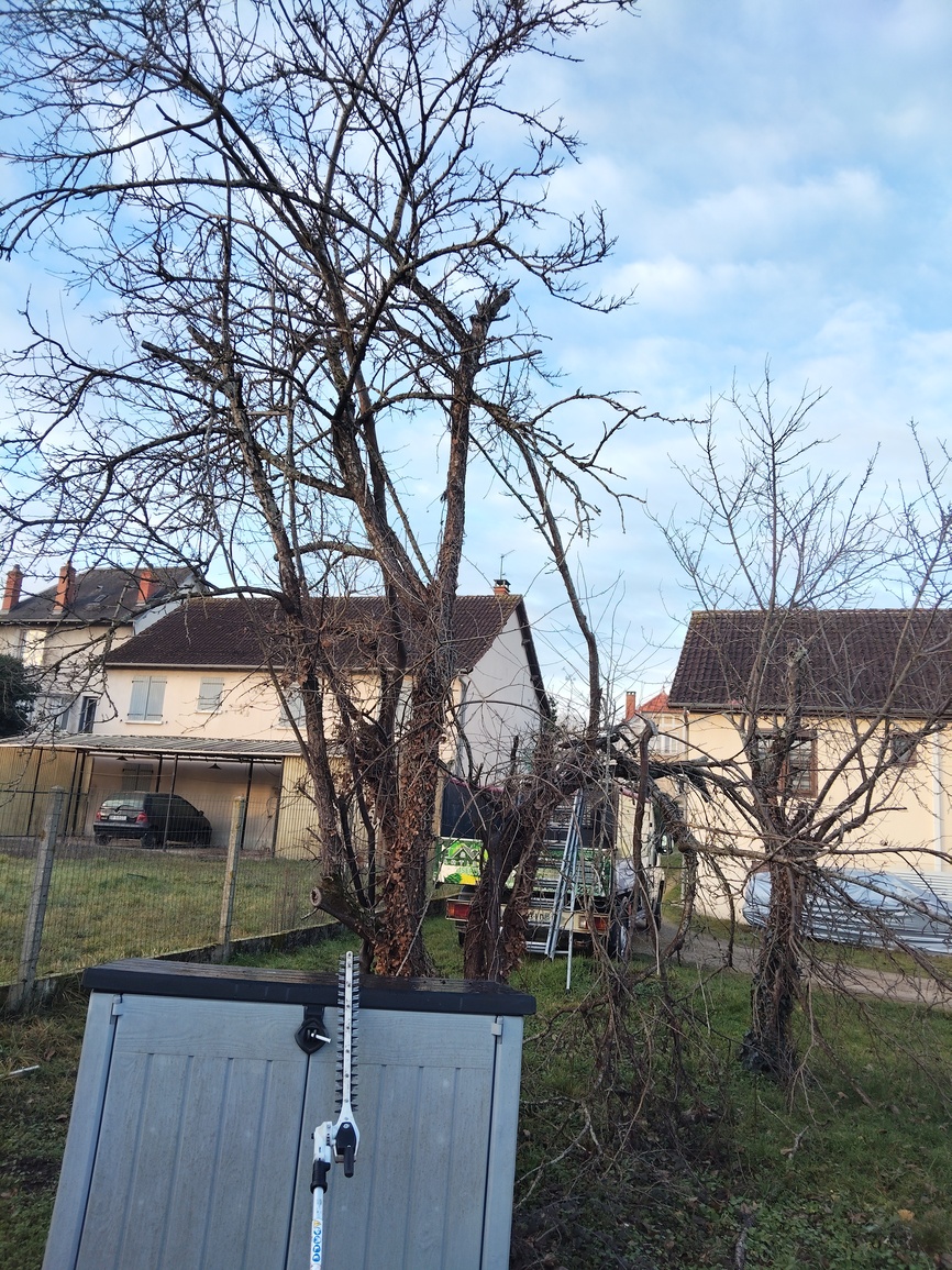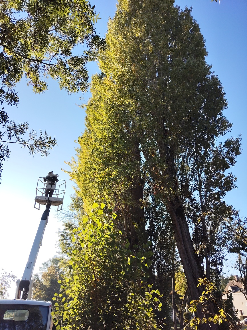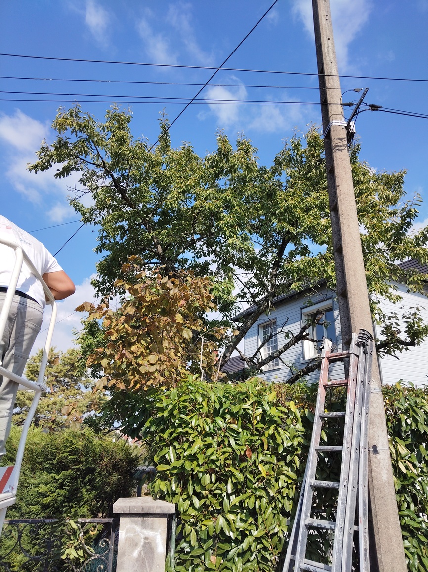 Abattage de deux sapins Douglas d’environ 30 m, et élagage d’un tilleul.