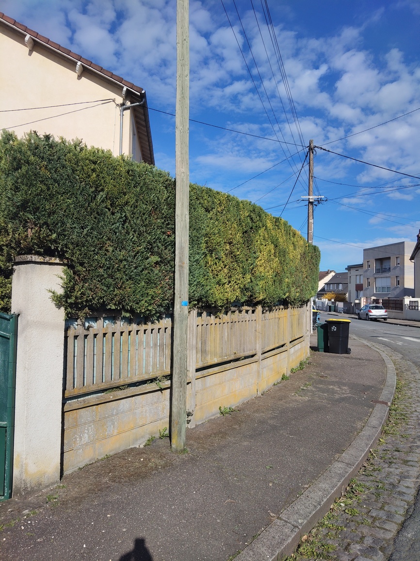 Taille d'une haie de laurier et nettoyage du terrain à Villabon.